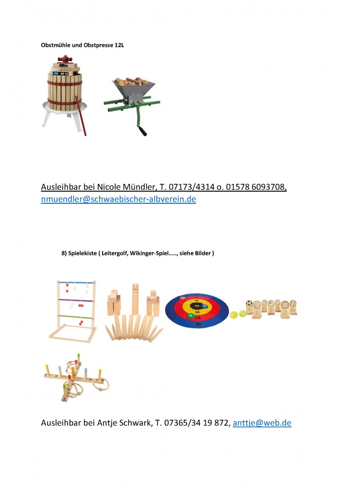 • Familie: Utensilien zum Ausleihen