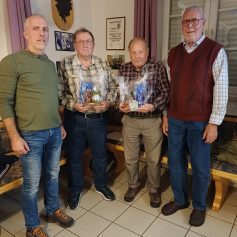 Bevor der Abend in netten Gesprächen endete, ehrte und verabschiedete Hartwig drei langjährige Wegewarte. Erfreulicherweise war es hier durch rechtzeitige Planung und Einarbeitung möglich, neue und hochmotivierte Wegewarte wiedereinzusetzen. Auch in der Ortsgruppe Ellwangen konnte diese Lücke durch Gerhard Ilg geschlossen werden. Hier war eine Einarbeitung nicht mehr möglich. Was Gerhard an diesem Abend aber mitgenommen hat ist, dass nicht nur Hartwig ein Ansprechpartner bei Fragen ist, sondern jeder in diesem Raum auch ihn gerne mit Tipps und Tricks unterstützt.